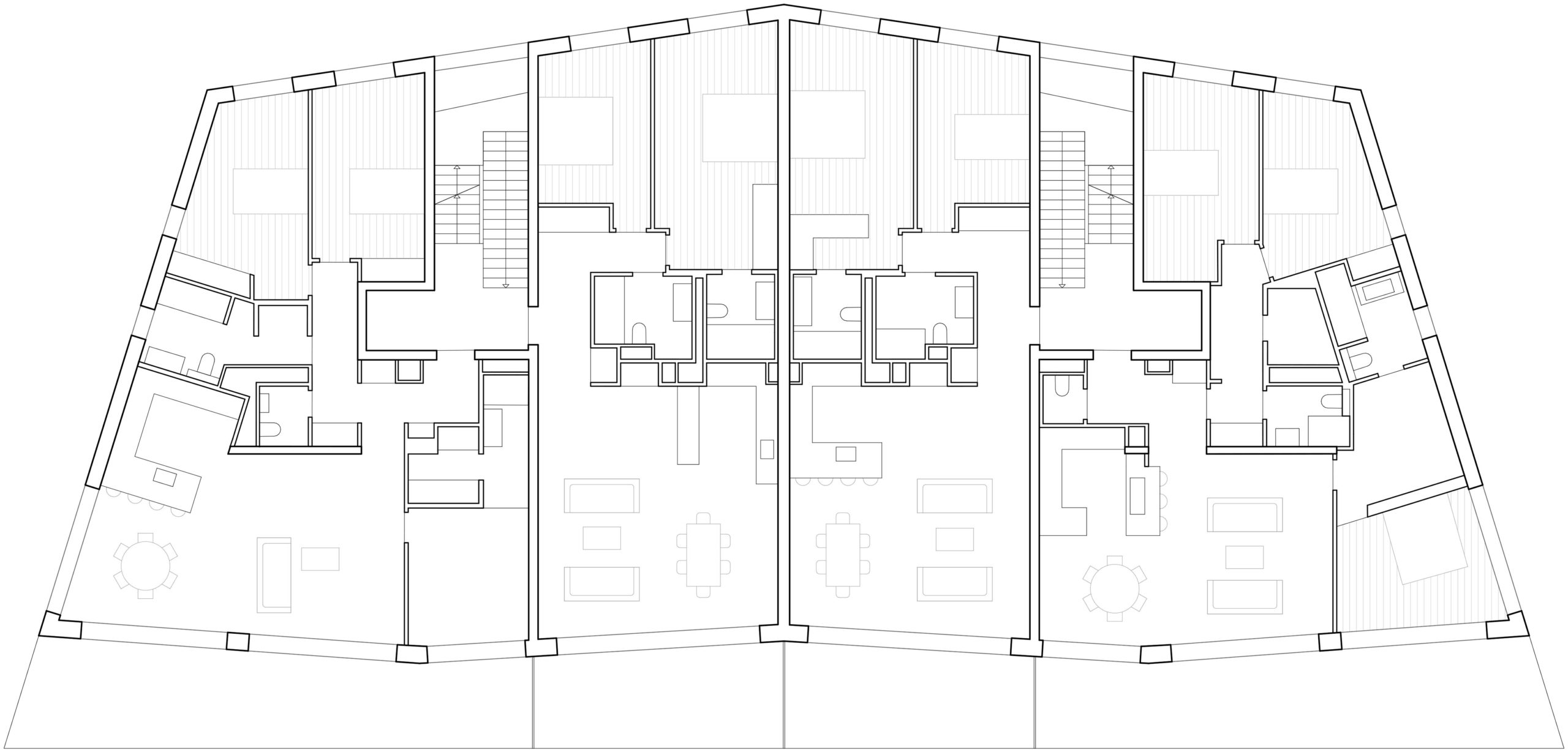 Composé de 10 appartements de 4 à 6 pièces en PPE, le bâtiment s’élève en rez +2 ayant l’intégralité du parking en sous-sol en faveur d’espaces extérieurs de qualité.