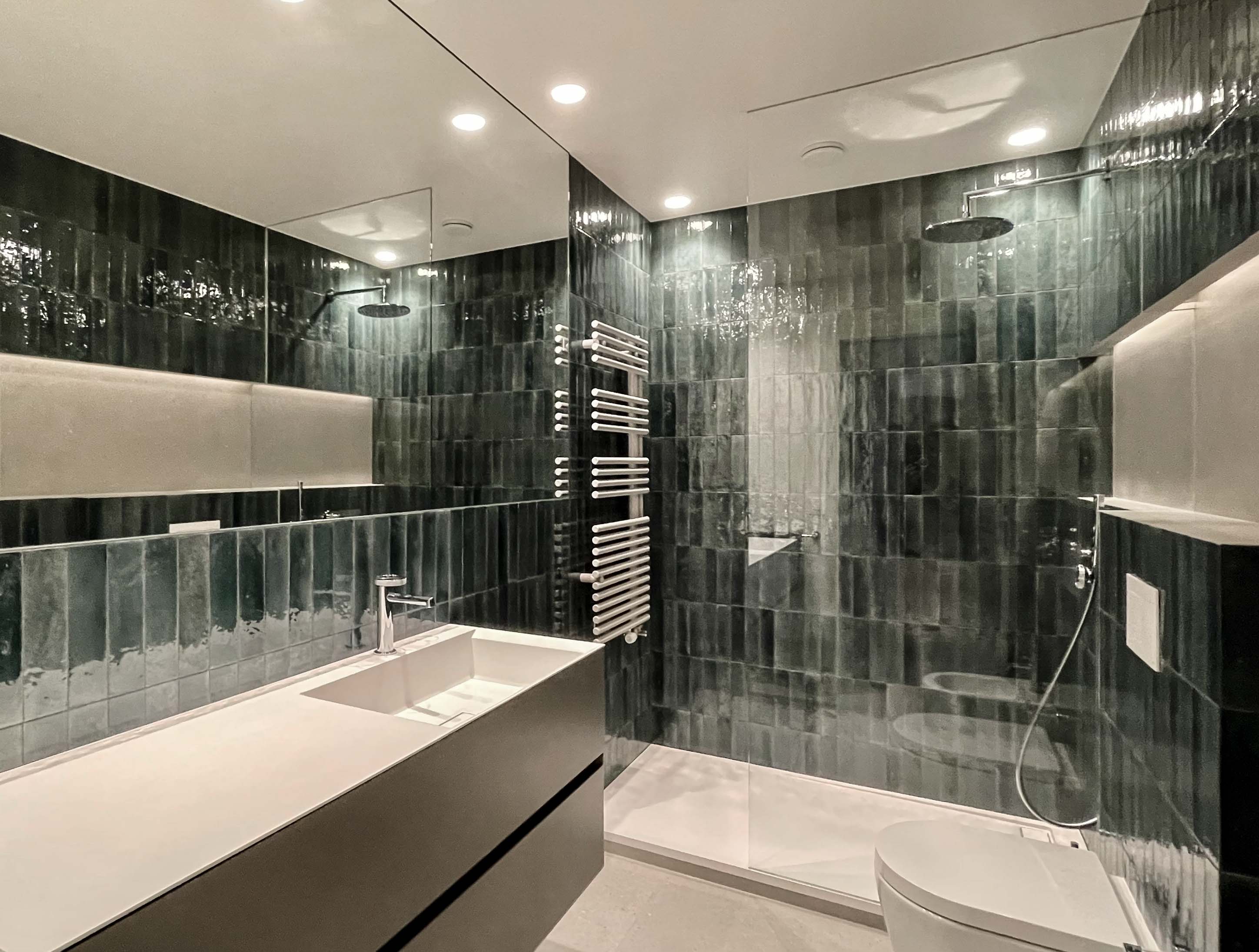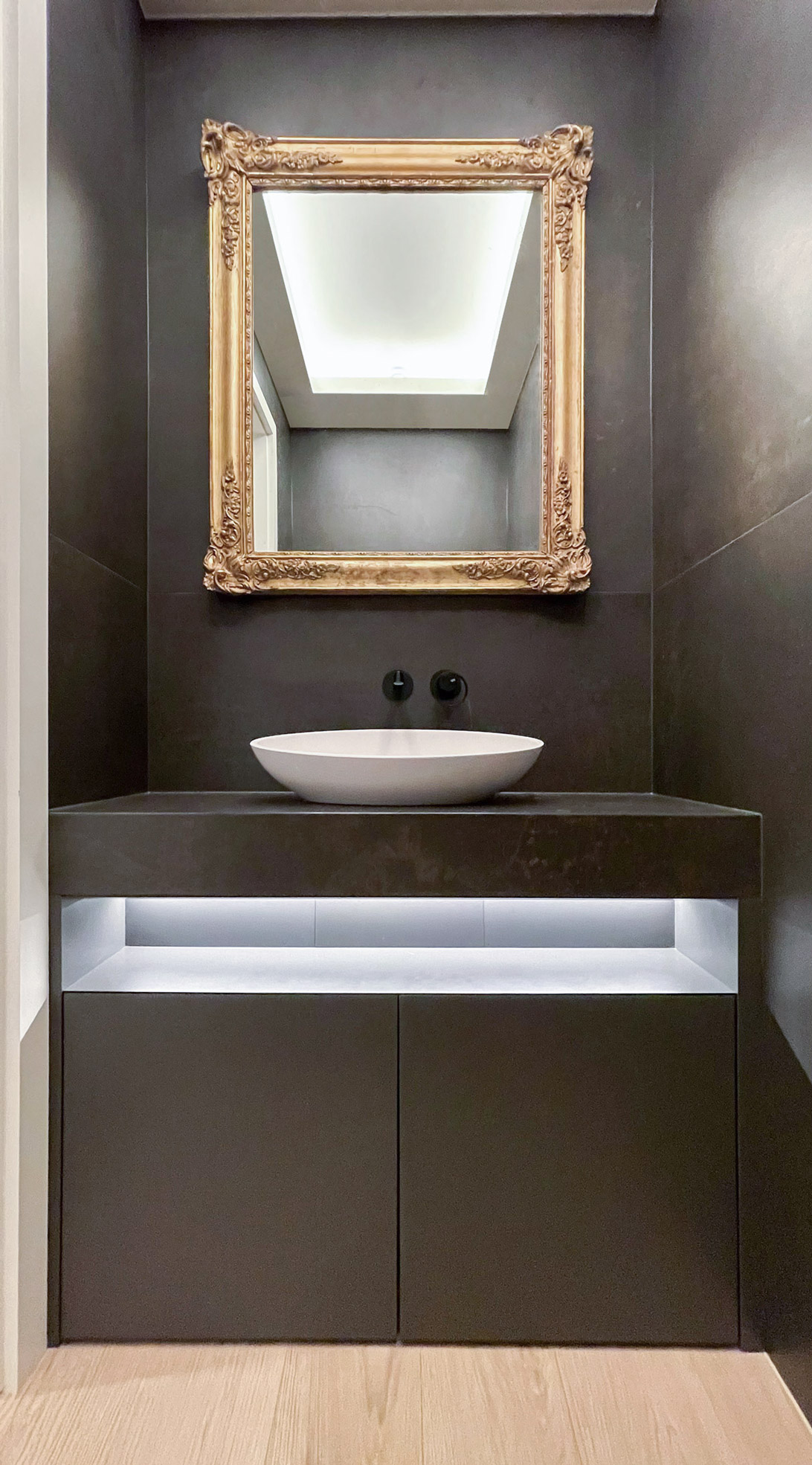 Les pièces d’eau ont été entièrement repensées, divers espaces de rangement intégrant également une zone buanderie ont été ajoutés, et des parois coulissantes parfois pleines parfois vitrées permettent également de séparer et de privatiser les espaces selon les besoins.