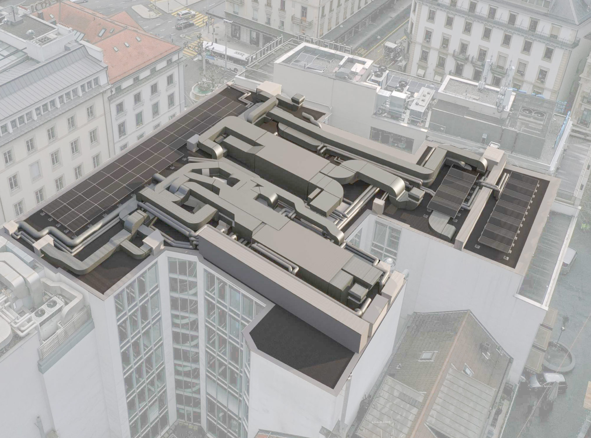 L’objectif du mandat a été l’obtention du label HPE Rénovation. Ceci par l’uniformisation et la mise en conformité des installations techniques, par l’amélioration de l’enveloppe thermique (façades et toitures), et par le raccordement à GeniLac. Les travaux ont été réalisés en site occupé.